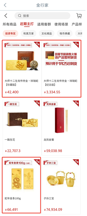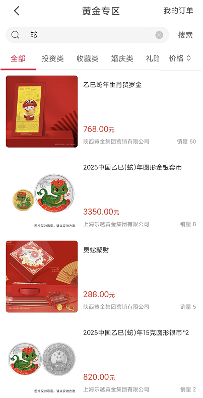 蛇年春节临近,黄金制品迎来销售旺季,不少银行推出多种含有“蛇元素”的生肖金条、贺岁金、金币金章、黄金饰品等贵金属产品。